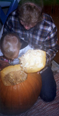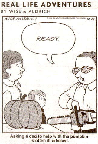 --No matter how large your pumpkin, never carve with a chain saw! Not only is it dangerous, but it's very, very, very, very messy!