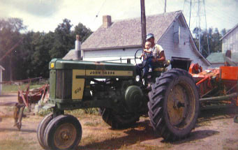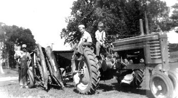 1964: Vernon and Dave pose on the 620 John Deere with a Case combine behind.