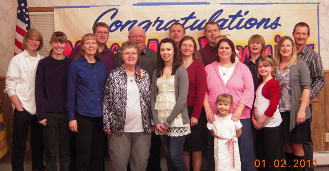 Here are some photos from Vern and Diane's 50th Anniversary open house on January 2, 2011. (They were married Dec. 31, 1960) Note 2 granddaughters modeling a bridesmaid dress and the flower girl dress from the wedding.