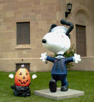 As a tribute to cartoonist Charles Schultz, who grew up in the city, 100 creatively decorated Snoopys are on display in St. Paul through September. Here, Jack pays a visit to Sailor Snooy at the historic Highland water tower. The 127 foot tower is at the corner of Snelling Ave. and Ford Parkway, which just happens to be a Downing Farm pumpkin selling spot. The St. Paul water utility typically holds an open house at the tower the second weekend of October, so that people can climb the 151 steps to the observation deck and view the fall colors.